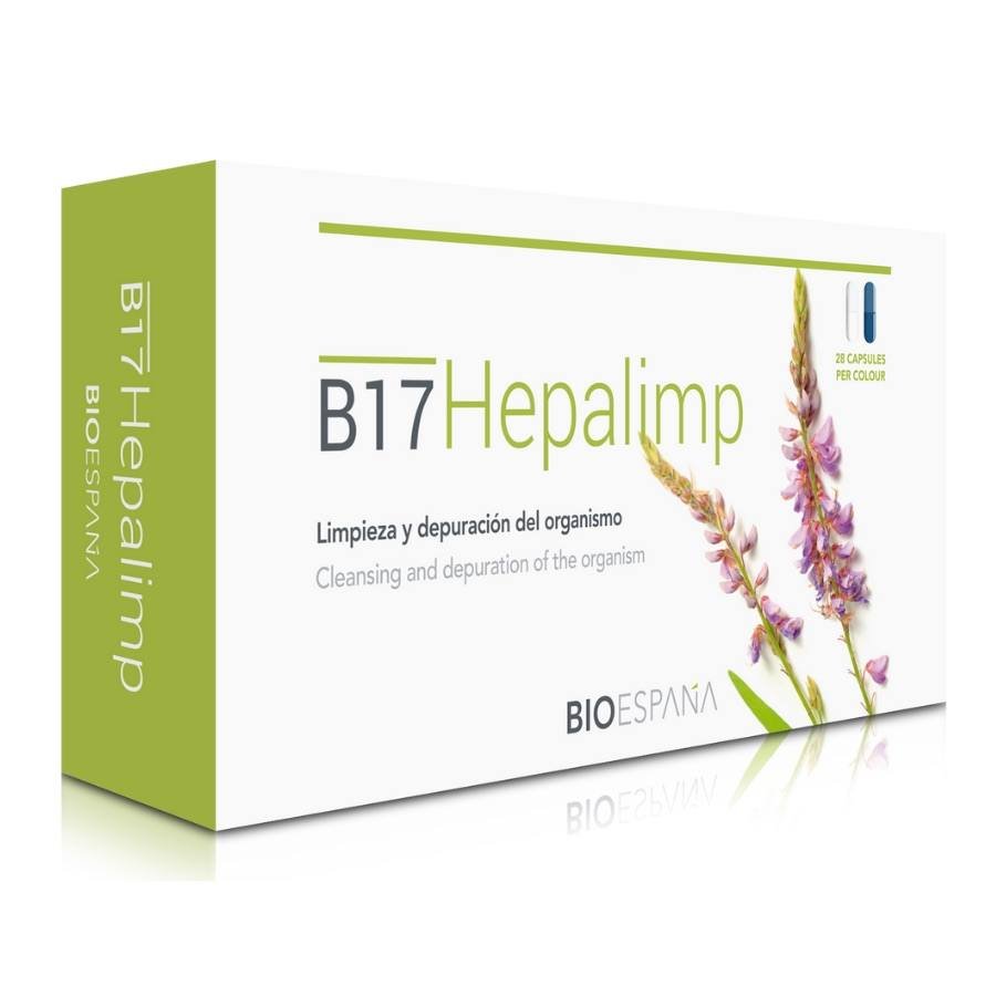 B17 Hepalimp 56 cápsulas de Bioespaña es un complemento está indicado para tratamientos de depuración hepático-biliar, tratamientos anti-obesidad, anti-acné, abuso de grasas y alcohol.
