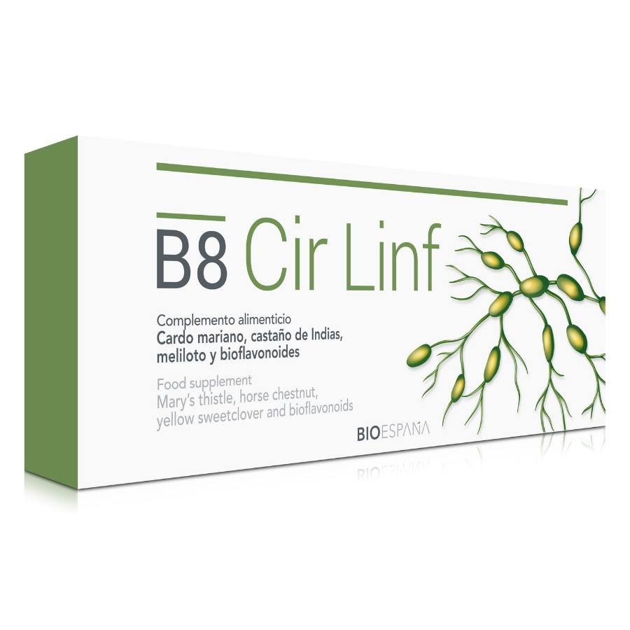 B8 Cir Linf 20 viales de 10 ml de Bioespaña favorece la circulación linfática y de retorno y tiene propiedades detoxificantes.